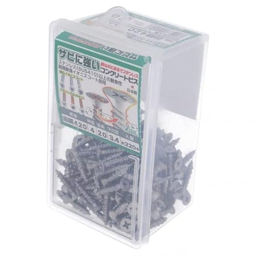 大里 サビに強いコンクリートビス 皿頭 4X20は、耐腐食性に優れたコンクリート用ビスで、サイズは4mmx20mm。220本入りで、施工性が良く、さまざまな用途に対応しています。