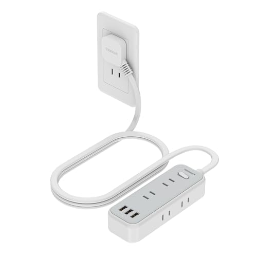 TESSANの電源タップは、6口AC差込口と3つのUSBポートを備えたコンパクトな延長コード。薄型プラグで壁掛け可能、スイッチ付きで便利です。雷ガード付きで安全性も高く、充電にも適しています。