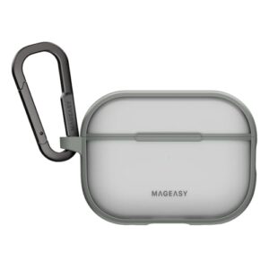 【MagEasy】 AirPods Pro2 AirPods Pro 対応 ケース フロスト クリア 耐衝撃 落下防止 カラビナ 付 カバー シンプル ワイヤレス充電 MagSafe対応 [ エアーポッズ プロ 2 第一世代 第2世代 対応 ] case Roam トランスパレントグレー