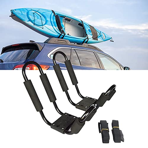 1組のカヤック屋根ラックは、カヤックやサーフボードを簡単に運ぶためのストラップが付いています。ユニバーサルフィット設計で、様々な車種に対応します。