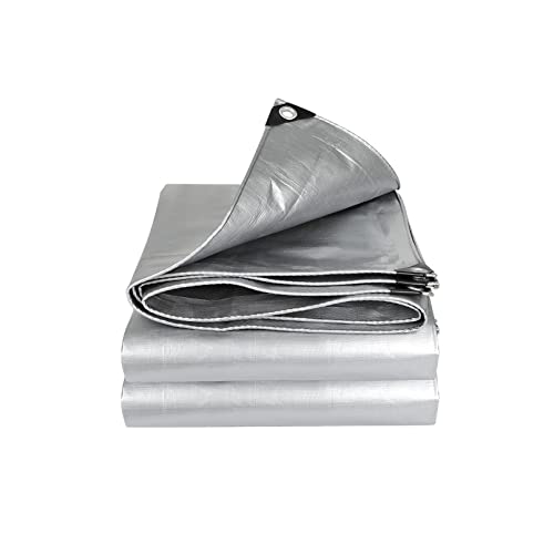 荷台シートは耐水性とUVカット機能を備えた厚手のシルバーシートです。160g/m2の素材で、キャンプや庭の保護に最適。両面防水で遮光性もあり、サイズは8×10mです。