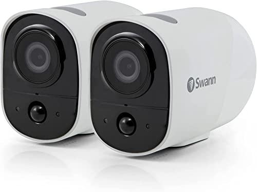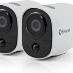 Swann Xtreem 1080P セキュリティカメラ2個セット。IP56仕様、屋外・屋内対応。WiFi接続、32GB SDカード付属。熱感知・双方向音声対応で、安心の見守りを実現。