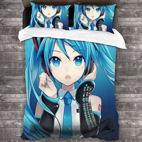 初音 ミクの布団カバー3点セット(シングル)は掛け布団カバー、ボックスシーツ、枕カバーを含み、洋式・和式兼用です。防ダニ加工で、速乾性もあり、洗い替えに便利です。