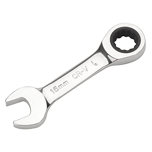 ラチェットレンチ 15mmは、CRV製で耐久性が高く、スムーズな作業を提供します。コンパクトなデザインで狭い場所でも使用しやすく、トルク管理が容易です。