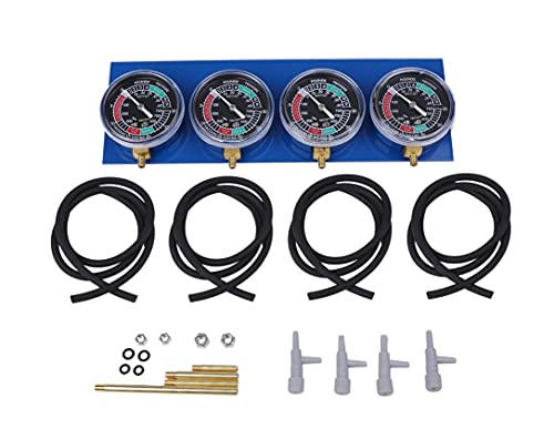 バイク用4連キャブレター同調バキュームゲージ。CB、CBX、GT、Z、GSX、CBR、GS、VFR、FZRなど多様なオートバイに対応。メンテナンスに最適な社外品パーツ。カラーはブルー。