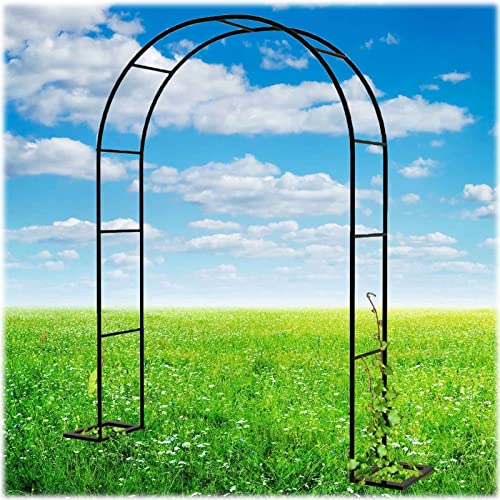 黒のバラアーチは、高さ240cm、幅150cmで、DIYのガーデン用パーゴラとして最適。組立キットで簡単設置可能。藤棚や果樹棚、花立てとしても使用できます。他の色やサイズも選べます。