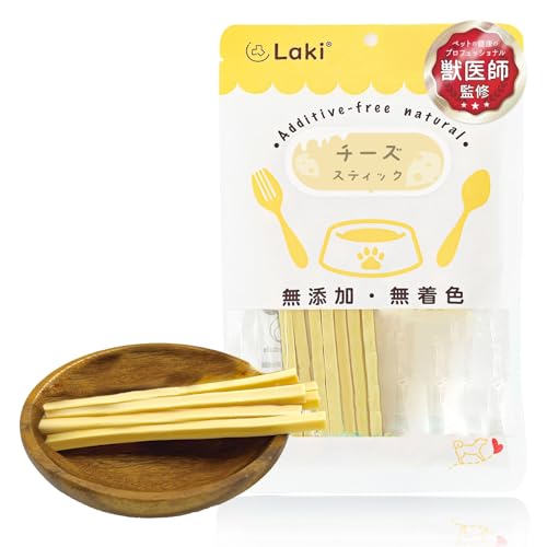 Lakiラキのチーズスティックは、無添加・無着色の日本製犬用おやつです。30g入りでカルシウム豊富。愛犬に最適な健康おやつです。
