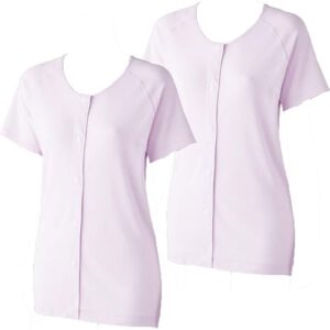【ハナサンテラス】介護下着 女性 前開き 2枚組 3分袖 プラスチックホック 介護用肌着 大人用 綿100% (ラベンダー, M)