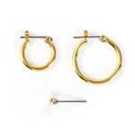 PLUSTERの真鍮製フープピアスは、丸玉とニッケルフリー設計で金属アレルギー対応。男女問わず楽しめるイエローゴールドのアクセサリーで、専用ポーチ付き。誕生日や母の日のプレゼントにも最適です。