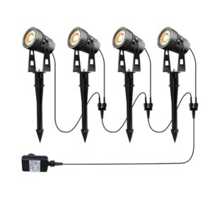 Aotealit 12V LEDガーデンライト電球色3000K 3WCOBライト 4個 IP65防水 暖かい光 ガーデンスポットライト常時点灯 高輝度 1100LM上下左右に回転可能 交換可能なコネクター 風景&芝生ライト庭園照明 歩道 車道芝生 庭 玄関