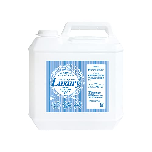 業務用の大容量5Lボディオイル。水溶性で肌に優しく、無香料のため多様な用途に対応。ラグジュアリーなマッサージ体験を提供します。