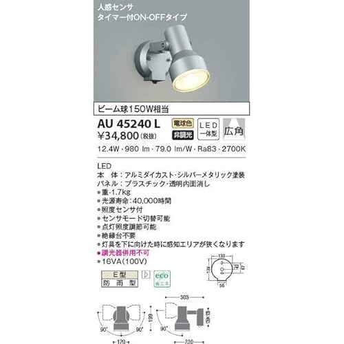 コイズミ照明 エクステリアスポットライト 【品番:AU45240L】の製品情報