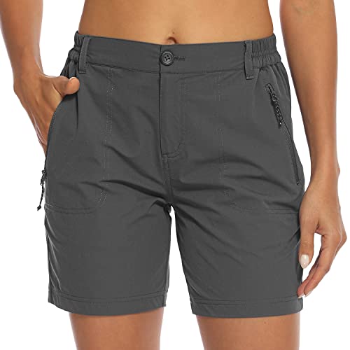 レディースハーフパンツはアウトドアや登山、ゴルフに最適な夏用ショートパンツ。吸汗速乾、UVカット機能付きで快適に過ごせます。ファスナー付きのダークグレー2XLサイズです。