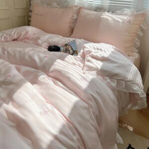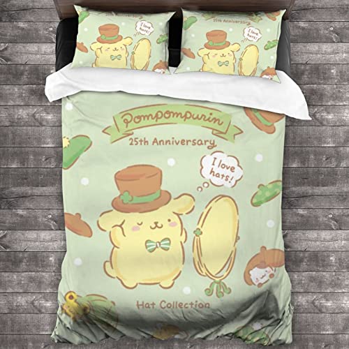 ぽむぽむプリンの布団カバー3点セットはシングルサイズで、掛け布団カバー、ボックスシーツ、枕カバーが含まれています。洋式・和式兼用で、防ダニ・洗い替え速乾タイプです。