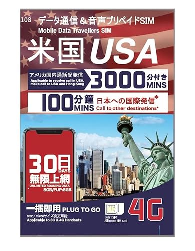 アメリカ・ハワイ プリペイドSIM 利用日数30日 データ容量8GB 4Gデータ通信 アメリカ国内・日本への無料通話付き SIMピン付 prepaid sim USA America travel with sim pin 高価買取中