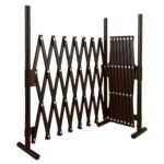 ALMAXのアルミ製ペットゲート、幅150cm×奥行15cm×高さ70cm。バタフライゲートSXG-0730DB、ダークブラウン色。ペットが自由に出入できるデザインで、安全にスペースを区切れます。