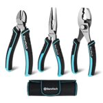 DuraTechのプライヤーセットは、ニッパー、ラジオペンチ、スリップジョイントの3点が含まれ、収納バッグ付き。家庭修理やDIY、アクセサリー作りに最適な工具です。