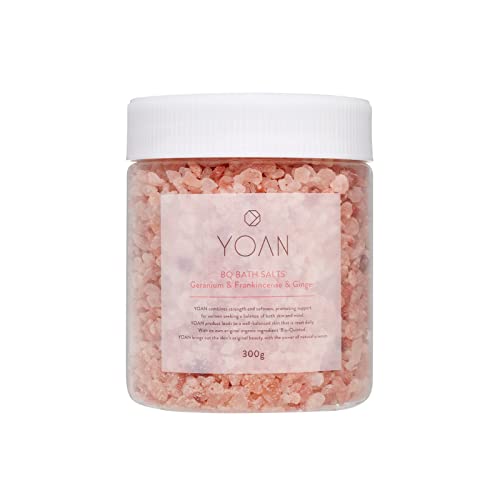 YOAN BQバスソルトは、ゼラニウム、フランキンセンス、ジンジャーの香りが楽しめる入浴剤です。ヒマラヤ岩塩を使用し、保湿や毛穴ケアに効果的。ボディケアやギフトにも最適です。
