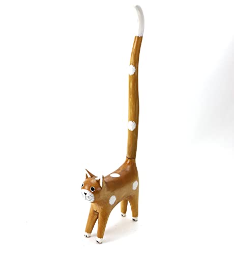 【Cocobari】バリネコのトイレットペーパースタンドは、木彫りのかわいい猫の置物で、おしゃれなトイレインテリアに最適。収納力もあり、アジアン雑貨としても人気のアイテムです。