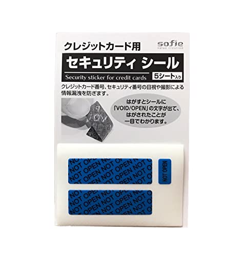Sofieのクレジットカード用セキュリティシールは、カード情報を守るための高耐久性フィルムで、剥がすとカード情報が無効化されます。安心なデザインで、カードの盗用防止に最適です。