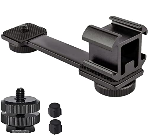 エクステンションシューマウント延長ブラケットは、1/4インチのベースプレートを備えた拡張アダプターで、三脚やジンバルに取り付け可能。3つのコールドシューアダプタが付属し、カメラやアクセサリの装着をサポートします。