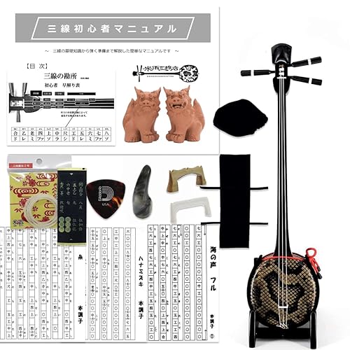 初心者向けの中型サイズ沖縄三線セットです。シンプルなデザインで、海の声、糸、ハナミズキの楽譜も付属。手軽に沖縄の音楽を楽しめるアイテムです。初心者でも扱いやすく、豊かな音色が魅力です。