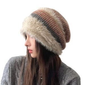 [ZVCXOE] ニット帽子 レディース 秋冬 ビーニー 女性防寒帽子 ニットキャップ 厚手 柔らかい 防寒防風 保温 リブ編み 伸縮性 ゆったり 暖かい 軽量 通勤 通学 自転車 スキー アウトドア 登山 頭囲適用範囲 55-60CM カーキ