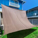 紫外線97.8%カットの厚手サンシェード。通常の1.6倍の生地使用で耐久性抜群。サイズは4m×4m、ダークブラウンカラーでベランダの日よけに最適。