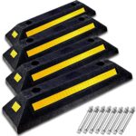 4面反射板付きのパーキングブロック。車止めとしての機能を果たし、安全に駐車スペースを確保。固定アンカー付きで安定性抜群。車庫やガレージに最適なタイヤ止め。4本セットでお得。