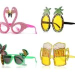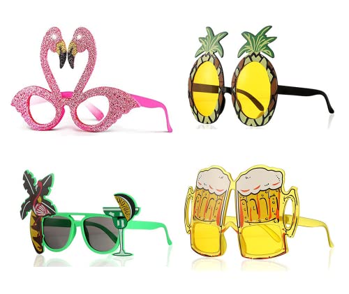 JUTOSUのノベルティパーティーサングラス4個セット。ビーチパーティーやハワイアンメテーマにぴったりの楽しいデザイン。子供から大人まで楽しめるメイクアップパーティー用品や写真小道具として最適です。