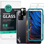IbywindのガラスフィルムはPoco X3 GT/Redmi Note 10 Pro 5G用で、強化ガラス製。2枚セットにカメラレンズプロテクターと背面保護フィルムが含まれ、簡単装着キット付き。