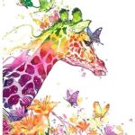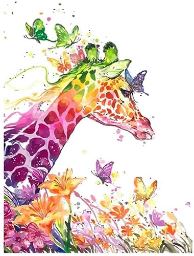 カラフルなキリンをテーマにした数字油絵キット。手塗りDIYで楽しめるデジタル油絵。サイズは40x50cm。芸術や手工芸に最適な装飾品作りにおすすめ。