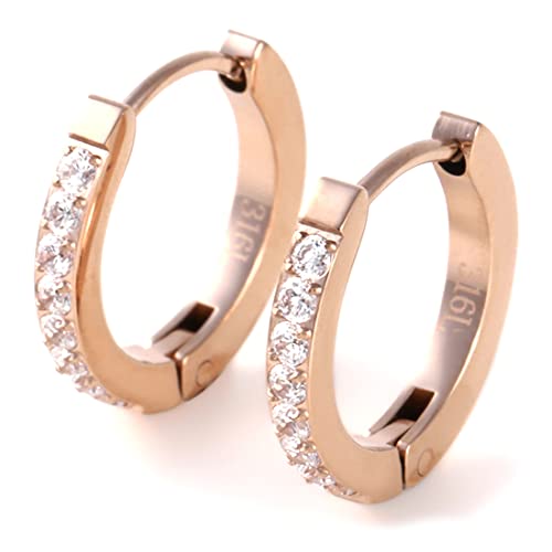 PLUSTER フープ ピアス シンプル キュービック ジルコニア ステンレス 金属アレルギー対応 ピンクゴールド レディース メンズ [ポーチ付き] 人気 誕生日 プレゼント ジュエリー プラスターの高価買取ITEM