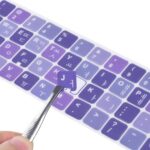 DAMMOMKO 2パック韓国英語キーボードステッカー。紫の背景に白い文字で、MacBook Air/ProやデスクトップPC用に最適。簡単に取り付けでき、キーボードの文字交換に役立ちます。