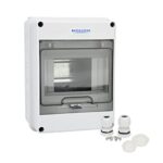 MOLLOM 5ウェイサーキットブレーカーMCB分配保護ボックスは、DINレール付きでIP65防水仕様。屋内外で使用でき、信頼性のある電気保護を提供します。