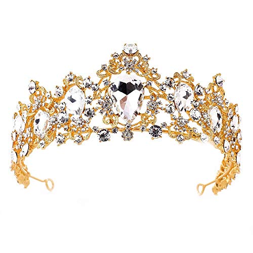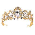豪華なウェディングティアラ。色は緑または赤、サイズは16cm x 6cm。クリスタル装飾で美しい仕上がり。ブライダル、プロム、ビューティーコンテストに最適。