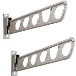 壁付け物干金物 楽・楽アーム 2本入は、簡単に取り付け可能で、服やタオルを効率よく干せる便利なアイテムです。耐久性に優れ、使用しない時はすっきり収納できます。屋外でも室内でも活躍します。
