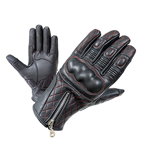 モトベースの春秋モデルバイク用スマホ対応プロテクションキルトレザーグローブMBLG-01は、ブラックとレッドのデザインで、Lサイズです。快適な装着感と安全性を兼ね備えています。