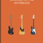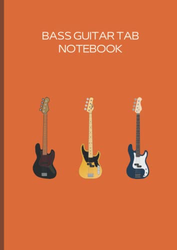 BASE GUITAR TAB NOTEBOOKは、オレンジのカバーカラーのA4サイズで、ベースギター用のタブ譜が100ページ収録されています。音楽制作や練習に最適なアイテムです。