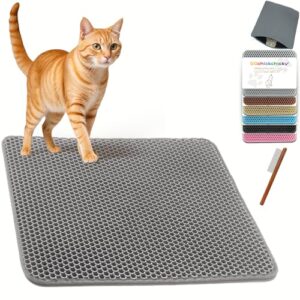 猫トイレマット、猫マット | 2025 抗菌&涼感 猫砂マット 飛び散り防止 | 防水キャットリターマット | ダブルレイヤーEVA、無臭の大きなグリッド | 尿漏れ防止&簡単お手入れ | ソフトな触り心地 | トイレと給餌用の多用途デザイン 灰色-40×52