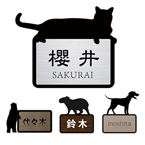 かわいい動物デザインのミニアクリル表札です。ねこやいぬのモチーフで、マンションにもおしゃれに取り付けられます。強力両面テープ付きで簡単設置、贈り物にも最適です。サイズはW74*H43mm、色は銀ヘアラインです。