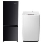 ハイセンスの冷蔵庫162L(黒)と洗濯機5.5kg(白)の新生活家電セットです。一人暮らしに最適で、自動霜取り機能付きの冷蔵庫を含む2点セットで、新生活を応援します。