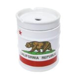 オールドアメリカン ドラム缶型灰皿(CAベア)は、カリフォルニア州の熊をモチーフにした陶器製のアッシュトレイです。フタ付でガレージや西海岸風のインテリアに最適。父の日のプレゼントにもオススメ。