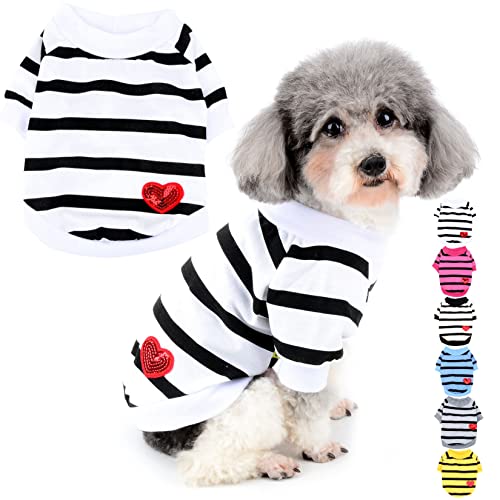 ZUNEAの犬服Tシャツは、春夏向けの小型犬用ボーダー柄タンクトップです。綿製で柔らかく、おしゃれなスパンコールハート柄がかわいい。脱毛保護にも配慮したデザインで、お散歩にも最適です。サイズS。
