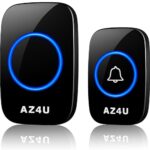 AZ4Uワイヤレスチャイムは、電池式インターホンで工事不要。技適マーク取得済みで、防水性能あり。玄関や介護用に最適。60種のメロディと4段階音量調整機能付き。シンプルなブラックデザイン。