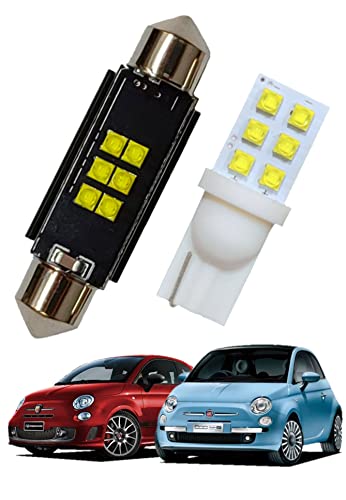 FIAT500およびABARTH500/595前期型用のLEDルームランプ前後セット。トランク用も含まれ、室内灯やアクセサリーカスタムに最適。型番ABA31209など対応。