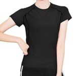 THREEGUNのレディース半袖インナーシャツは、吸汗速乾機能付きで快適な着心地。コンプレッションデザインにより、ヨガやジムに最適。UVカット機能付きで夏のトレーニングにも安心です。カラーはブラック、サイズはLです。