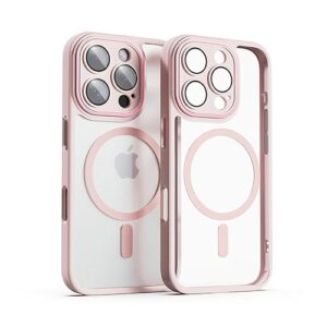 miak iPhone 16 pro ケース レンズガード 一体型 MagSafe対応 クリアケース [ カメラレンズ保護 アルミ合金カメラフレーム・ボタン 衝撃吸収 エアークッション 耐衝撃 防塵 背面ポリカーボネート TPUベゼル ] アイフォン 保護カバー MA27198i16PR ピンク 【国内正規品】