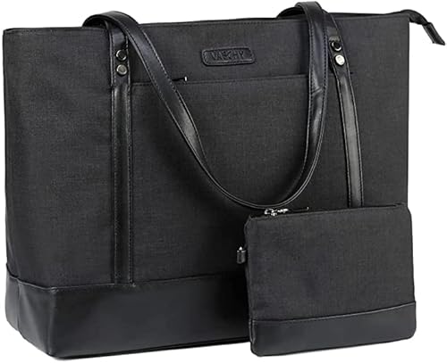 VASCHYのトートバッグは、大容量のビジネスバッグでA4サイズや15.6型ノートPCが収納可能。通勤や出張に便利で、肩掛けもできる。2点セットでスーツケース専用ベルト付き、カラーは黒です。