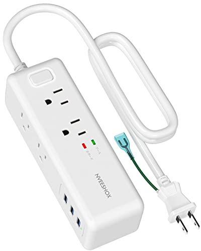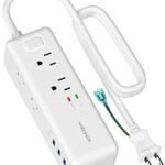 NVEESHOXの延長コードは長さ3mで、雷ガード付き。8つのAC口と3つのUSBポートを持ち、一括スイッチと安全保護機能を搭載。テーブルや壁掛けに対応したコンパクトなデザインです。
